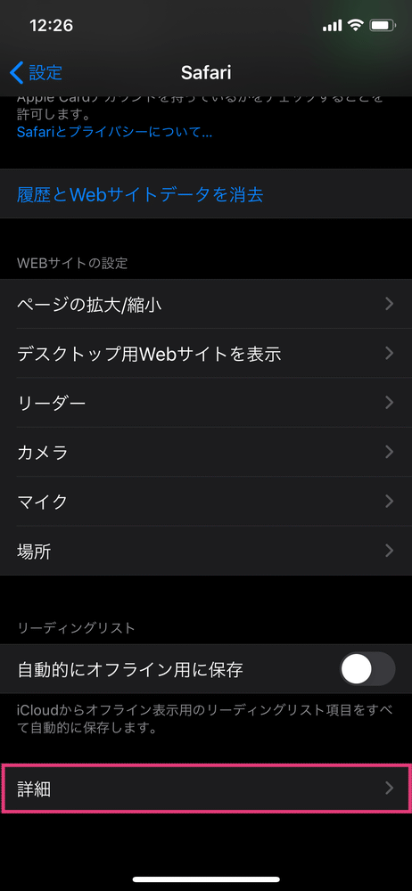 「設定」アプリを起動、Safari > 詳細 > 「Webインスペクタ」のスイッチをONにします。