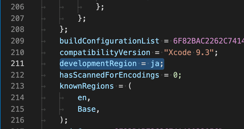 (ここで設定するdevelopmentRegionが、 $(DEVELOPMENT_LANGUAGE)に割り当てられるようです = 挙動から推定)