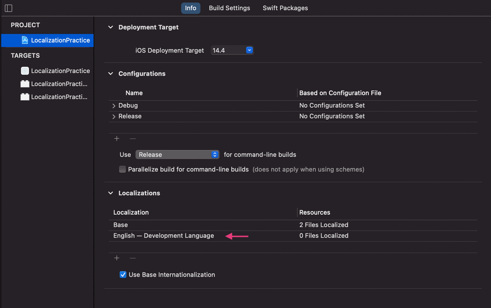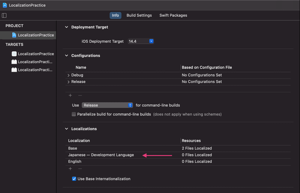 この方法では、 Info.plistは変更しません。「Localization native development region」の項目は$(DEVELOPMENT_LANGUAGE)のままで大丈夫です。