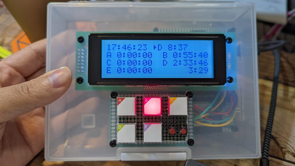アラーム機能では、設定した時刻になると指定したボタンが点滅してタスクの切り替えを知らせます。 液晶画面の右上には、タスクの切り替えまでの残り時間を表示します。