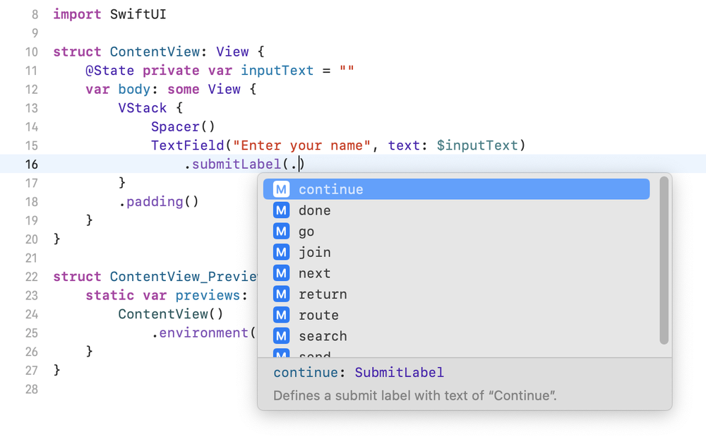 .submitLabel(.done)