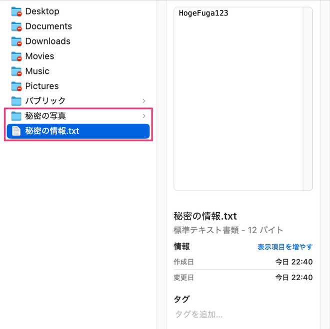 ホームディレクトリに自分で作成したフォルダやファイルは、必ず、ターミナルでchmod 700を実行します。