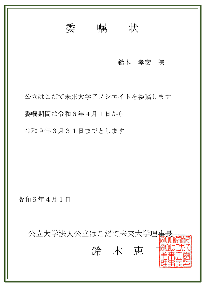 - 「公立はこだて未来大学アソシエイト」の称号を受けた