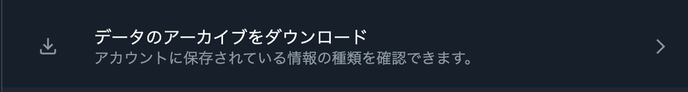 X(Twitter)の設定画面から、「データのアーカイブ」をリクエストします。