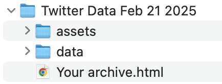 次は、HTMLファイルを開き、/Your%20archive.html#/tweets/tweetsにアクセスします。